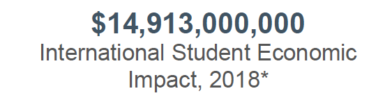 作为美国国际学生第一来源国,中国学生也给美国带去了巨额财富。这份报告援引美国商务部的数据说,2018年,中国留学生给美国带去的经济影响(economic impact)高达149亿美元。